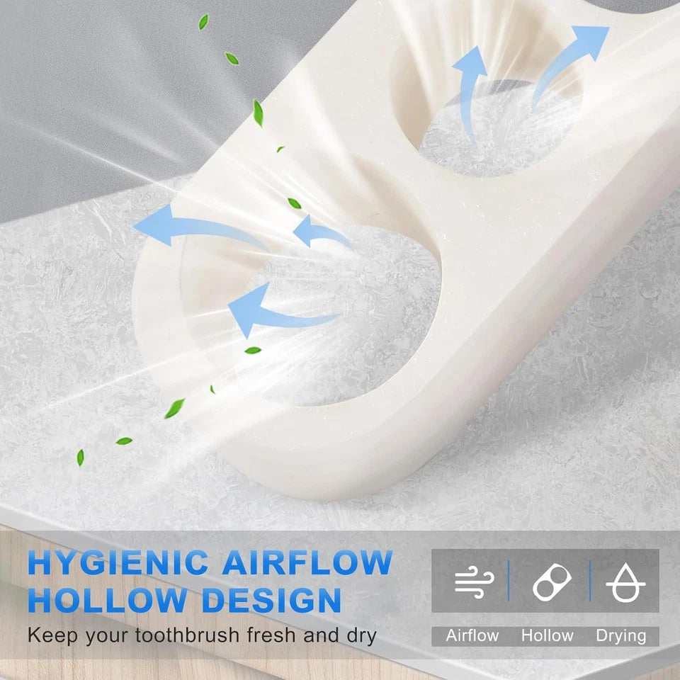 - Breathable Design ---- The 6 holes that are bored into this toothbrush holder go all the way through, designed for air ventilation, and more sanitary than traditional toothbrush holders, it can keep your toothbrushes quickly dry and easy to clean.